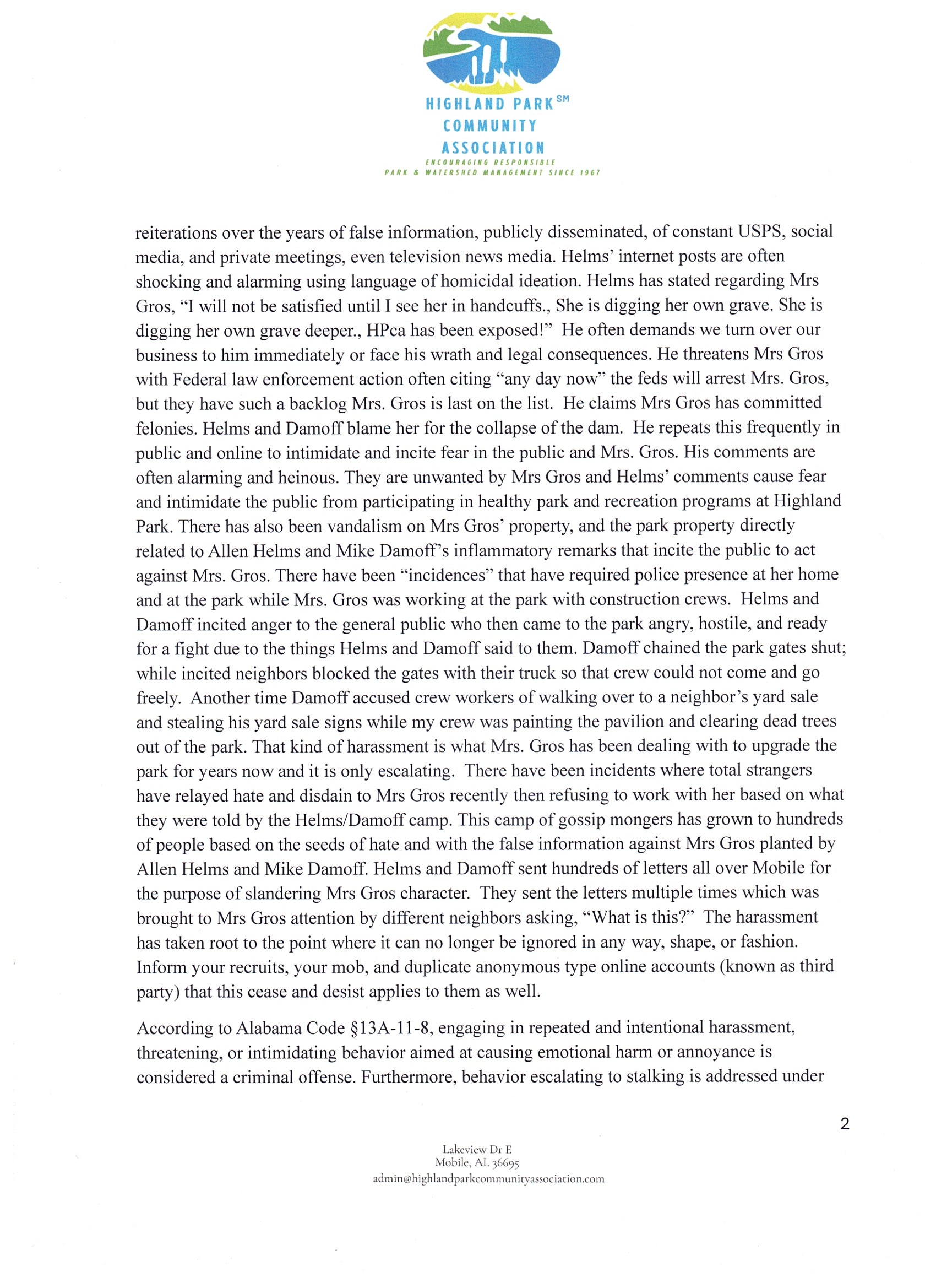 Due to the barrage of many years of Helms and Damoff non-stop public harassment of Sherry Gros and HPca, Inc and their recent escalation of recruitment of others this Cease and Desist Notice is for public consumption.